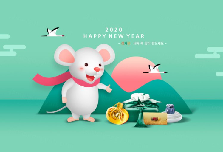 图穷联素材库 » 韩式绿色年卡通可爱风格鼠年海报模板