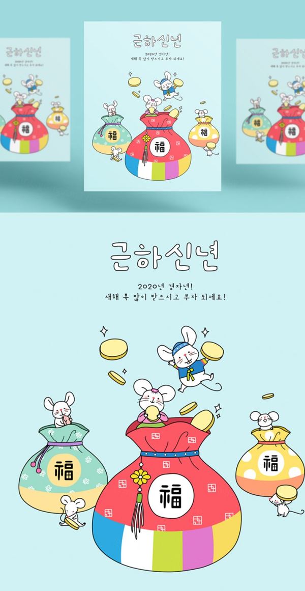 春节新年韩式年幸运礼包鼠年海报模板