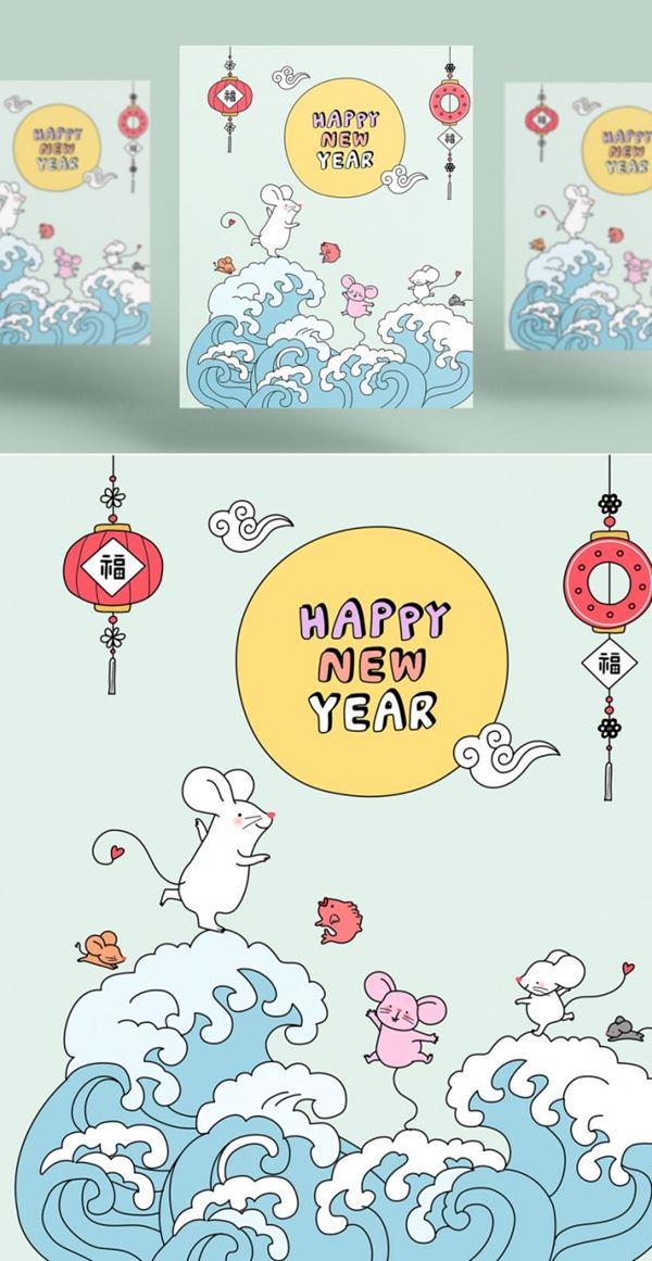 图穷联素材库 » 新春挂坠祥云鼠年年海报模板