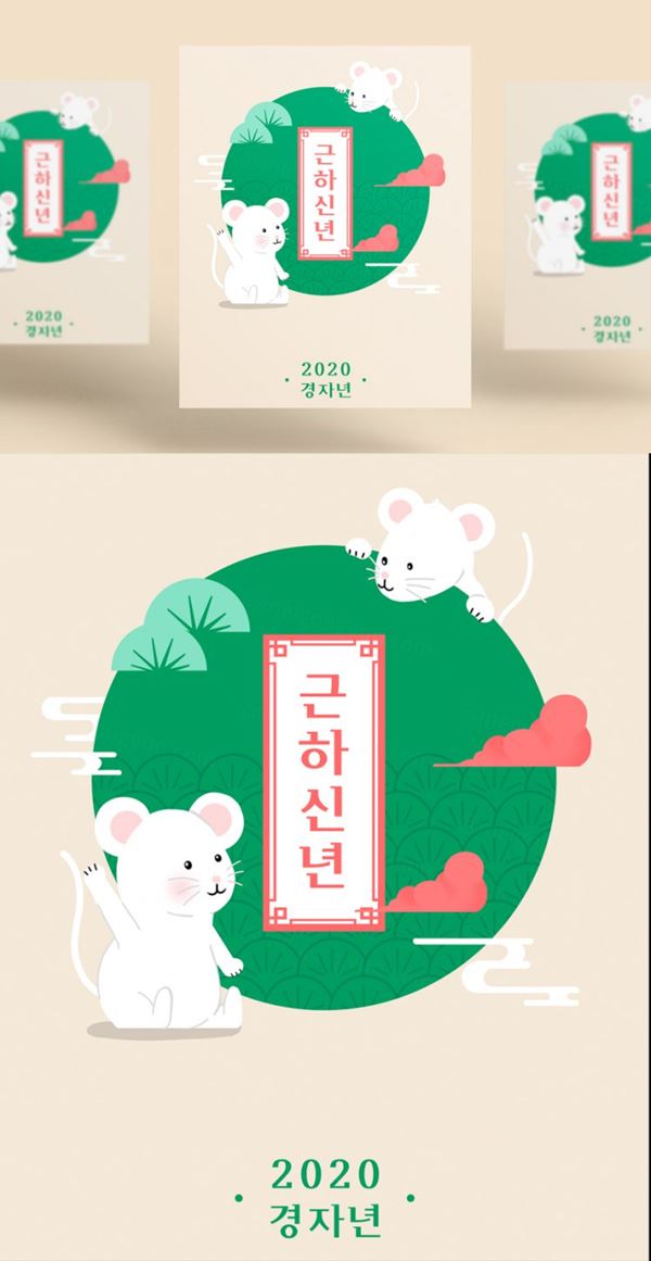图穷联素材库 » 韩式松树祥云年卡通可爱的鼠年海报模板