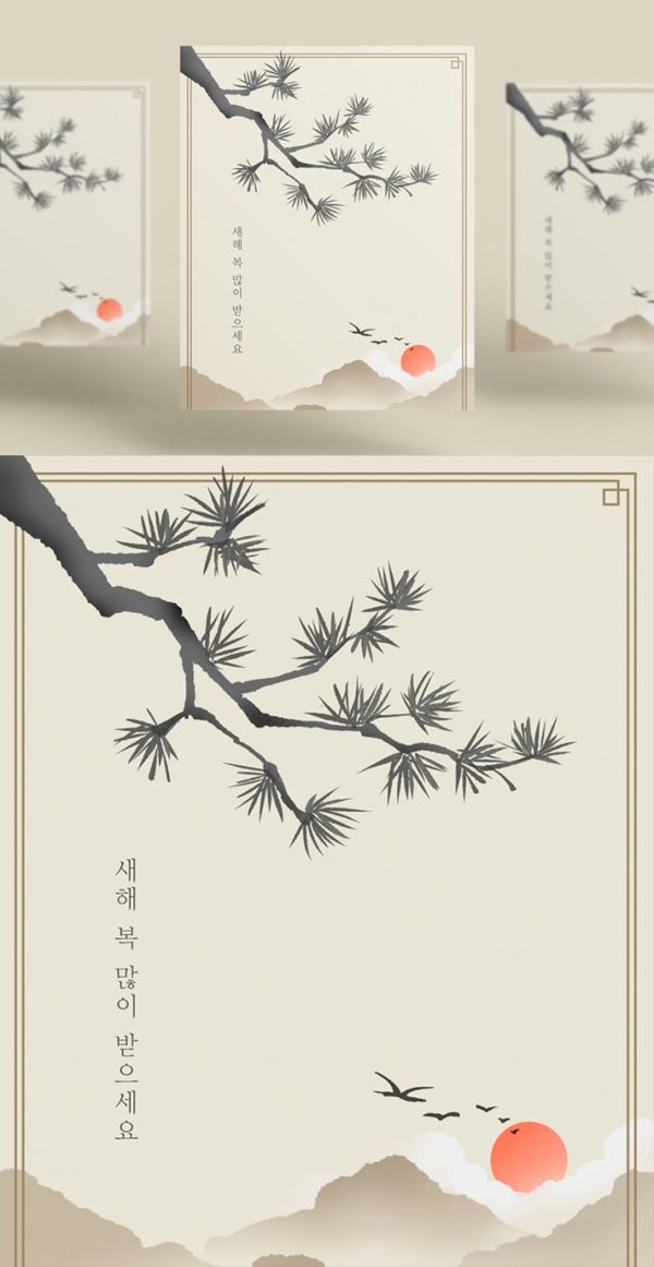 图穷联素材库 » 日式中国风松树年卡通可爱的鼠年海报模板