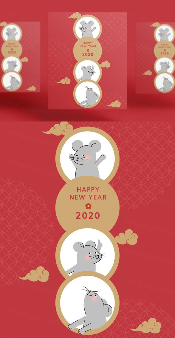图穷联素材库 » 红色祥云活泼的鼠年海报模板