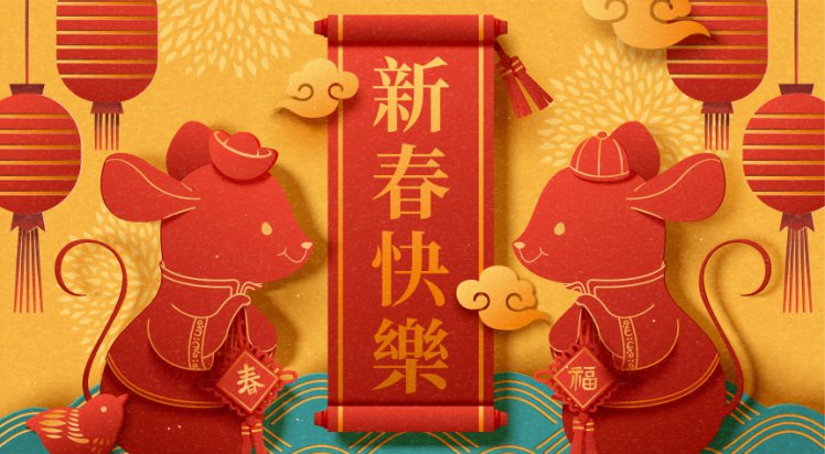 图穷联素材库 » 金色春节对联春节新年韩式年卡通可爱风格鼠年海报模板