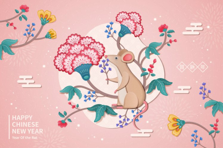 图穷联素材库 » 粉色春节新年韩式年卡通浪漫风格鼠年海报模板
