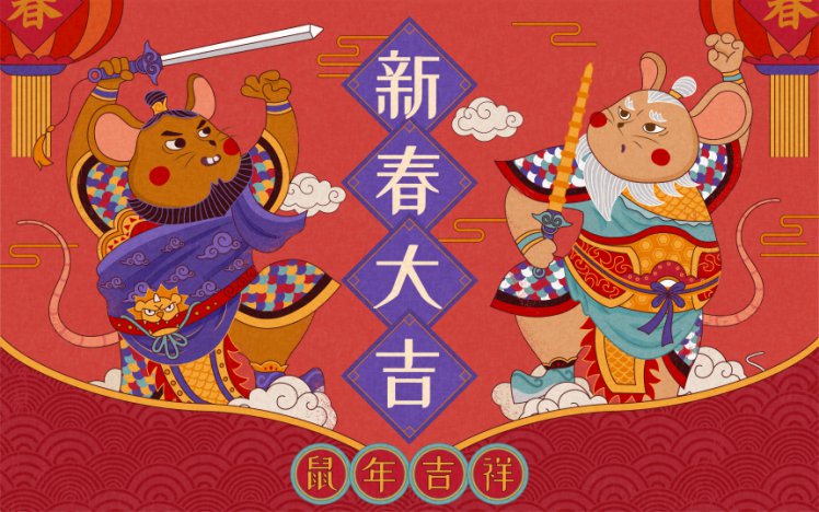 图穷联素材库 » 春节新年韩式年红色门神鼠年海报模板