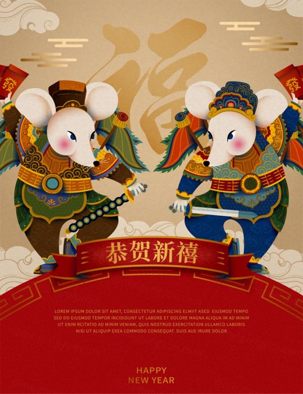 图穷联素材库 » 恭贺新春霸气年鼠年创意海报模板