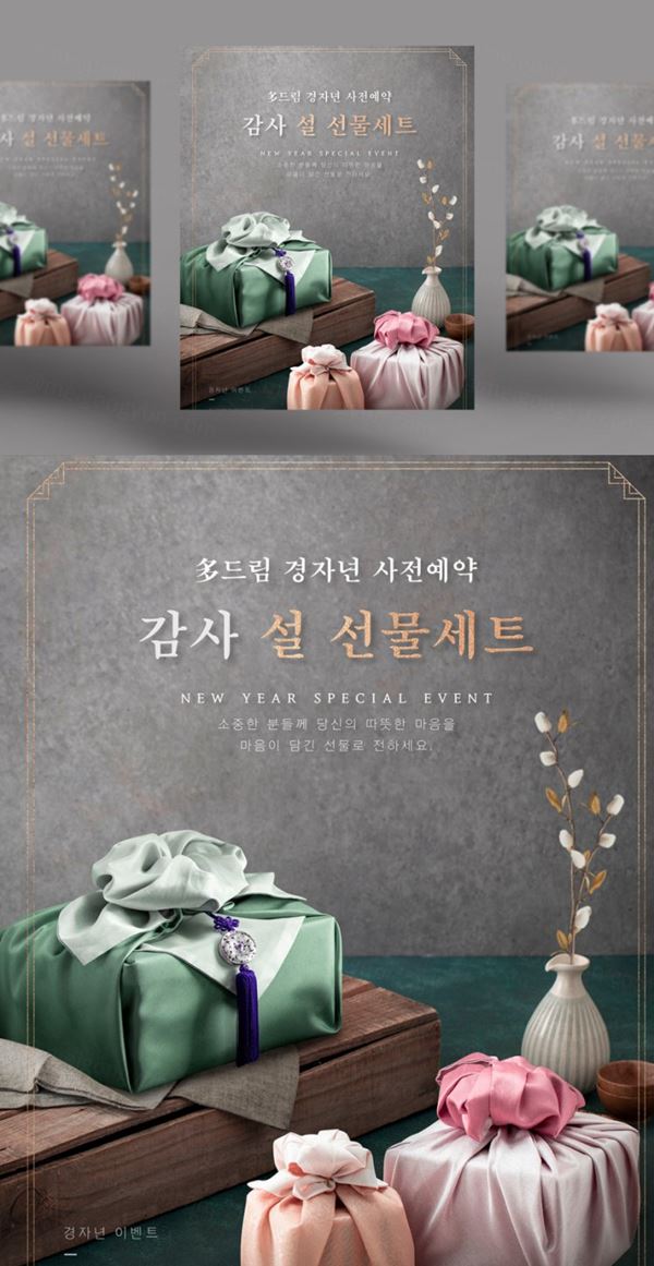 图穷联素材库 » 春节新年韩式年祥云礼品包装盒海报模板