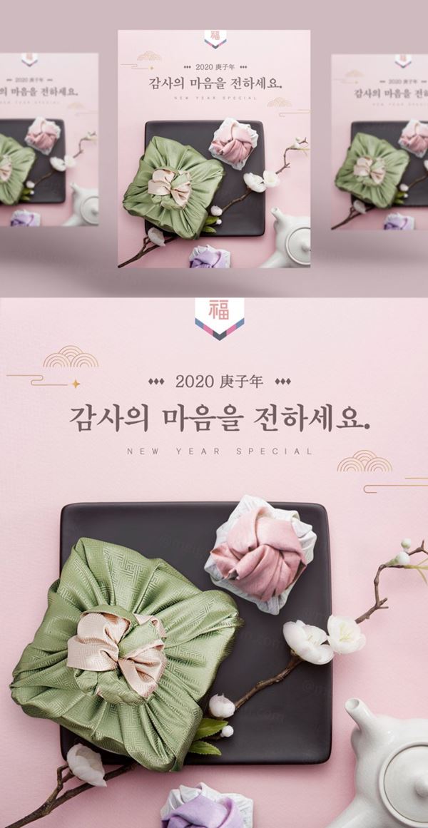 图穷联素材库 » 春节新年韩式年精美礼品盒海报模板