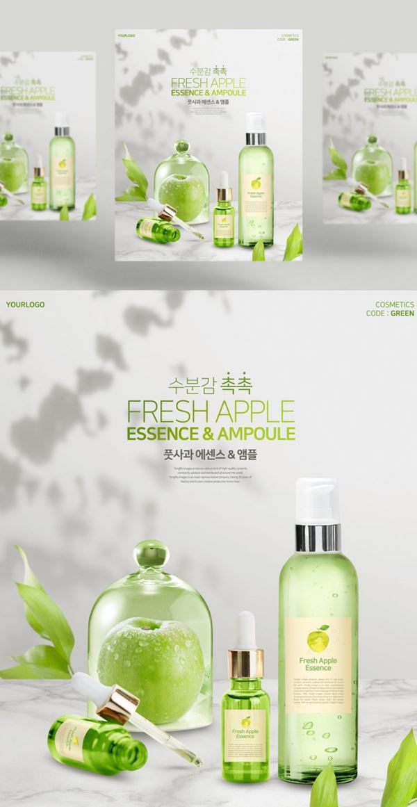 图穷联素材库 » 苹果味精华水乳化妆品海报设计模板