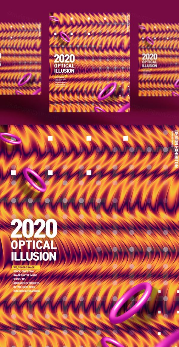 图穷联素材库 » 彩色错觉抽象几何弯曲形状社交媒体海报设计模板