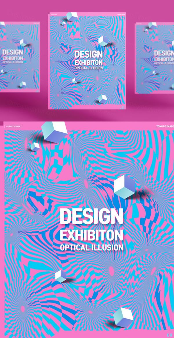 图穷联素材库 » 错开的方块抽象几何弯曲形状社交媒体海报设计模板