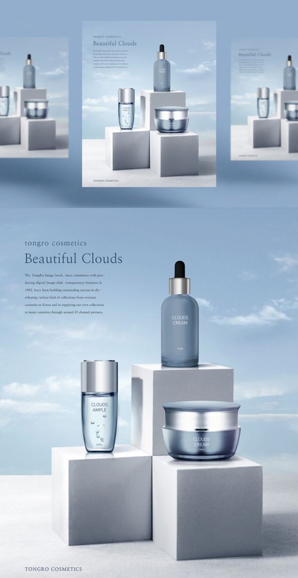 图穷联素材库 » 轻柔无刺激温和的简约的水乳套装化妆品海报设计模版