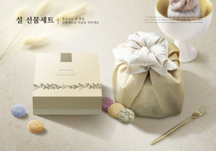 图穷联素材库 » 韩式农历新年糕点礼物套装海报设计模板