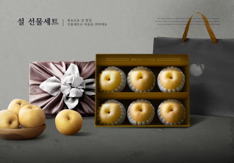 图穷联素材库 » 韩式农历新年水果梨子礼物套装海报设计模板