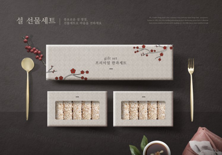 图穷联素材库 » 韩式农历新年食物礼物套装海报设计模板