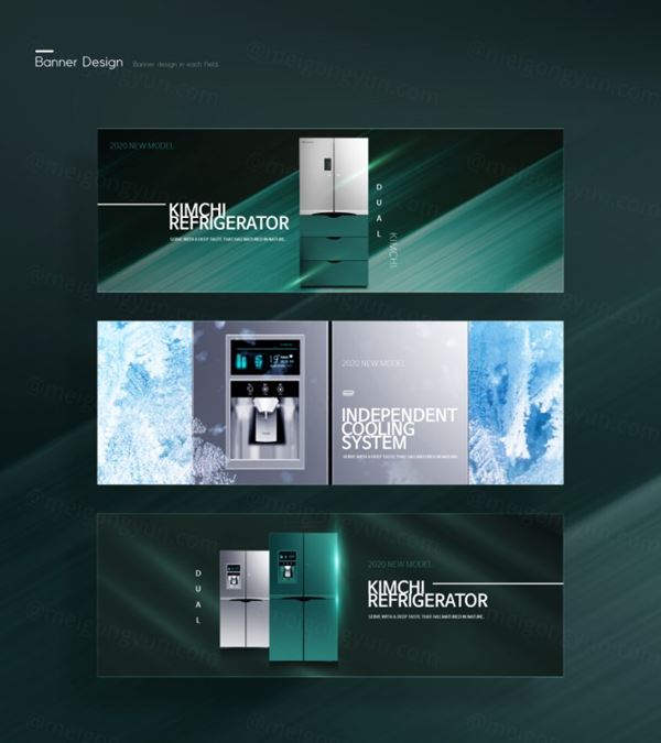 图穷联素材库 » 翡翠绿精致的双开门冰箱横幅海报模板