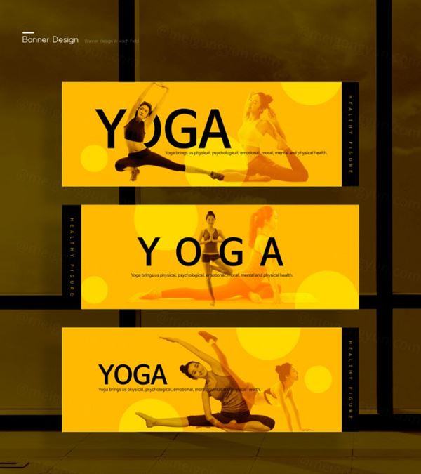 黄色瑜伽健身横幅广告海报模板