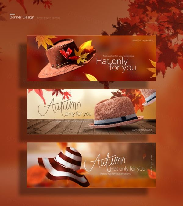 图穷联素材库 » 秋季枫叶女士帽子促销横幅广告海报模板