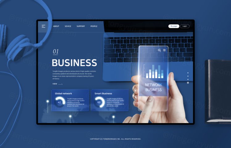 图穷联素材库 » 蓝色科技感的手捧电脑数据海报设计模板