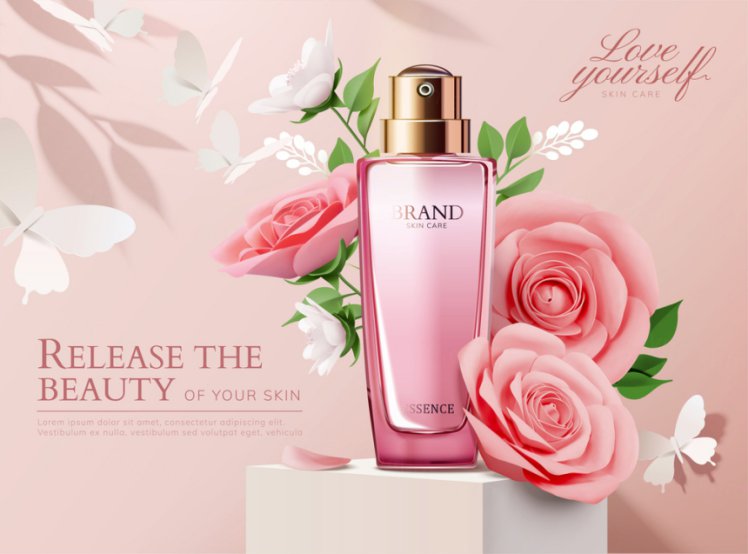 图穷联素材库 » 粉色玫瑰香水浪漫高档化妆品海报3