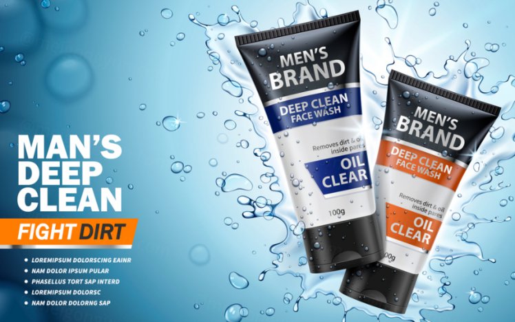 图穷联素材库 » 男士竹炭精华清爽洁面乳海报模板