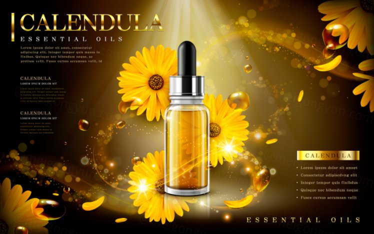 图穷联素材库 » 雏菊花太阳花黄金精华乳液护肤品合成海报