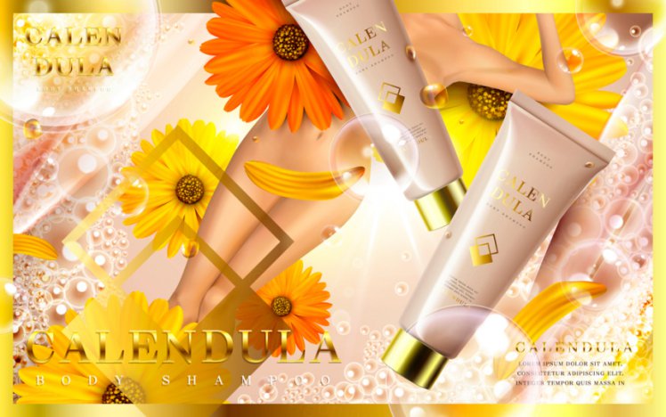 图穷联素材库 » 太阳花雏菊身体乳湿粉粉底液乳液眼霜合成海报