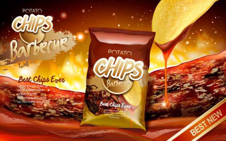 图穷联素材库 » 干脆的烧烤薯片油炸快消品海报模板1