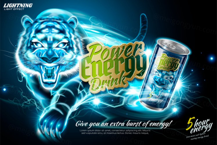 图穷联素材库 » 绿色霸气的老虎发光海报能量饮料海报