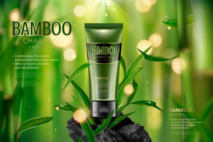 图穷联素材库 » 黑色竹炭清洁面霜合成海报素材3