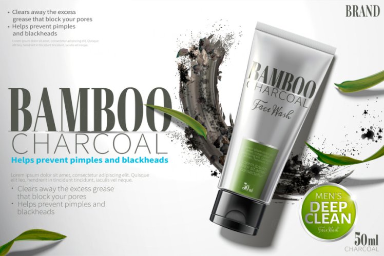 图穷联素材库 » 黑色竹炭清洁面霜合成海报素材2