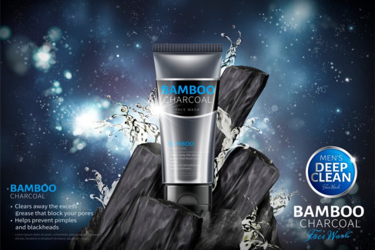 图穷联素材库 » 黑色竹炭清洁面霜合成海报素材1