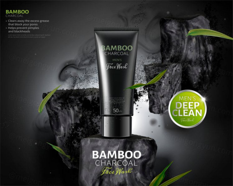 图穷联素材库 » 黑色竹炭清洁面霜合成海报素材