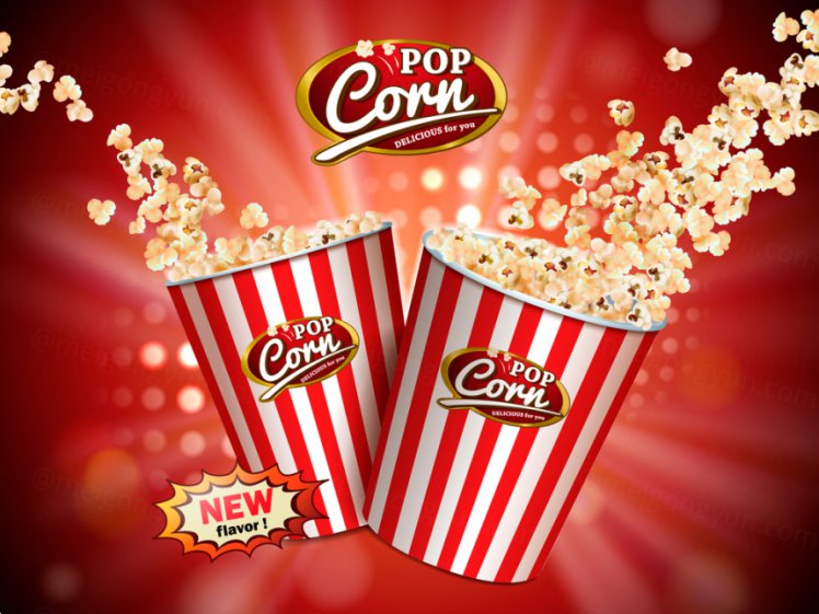图穷联素材库 » 快餐飞溅的爆米花矢量海报模板