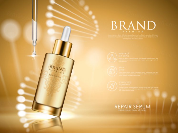 图穷联素材库 » 24K黄金精华液保湿液胶原蛋白合成海报