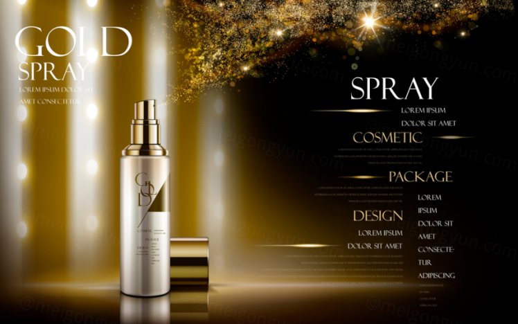 图穷联素材库 » 24K黄金精华湿粉乳液精华防晒喷雾海报模板2