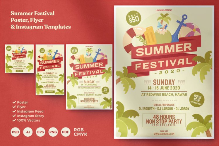 图穷联素材库 » 夏季节日营销插画海报模板下载