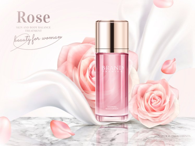 图穷联素材库 » 粉色玫瑰花精华乳液护肤品海报模板