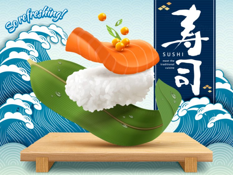 图穷联素材库 » 三文鱼日本寿司矢量海报模板