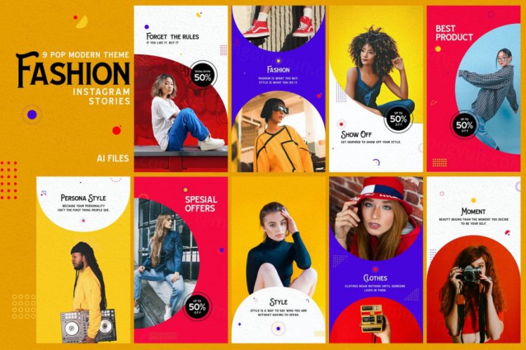 流行现代主题-时尚Instagram故事社交媒体banner海报设计模板集合-AI