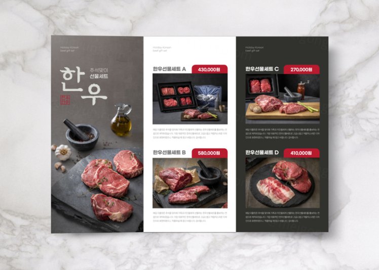 图穷联素材库 » 高档牛排西餐厅菜谱菜单点餐折页PSD模板