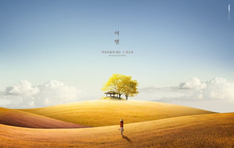 图穷联素材库 » “心灵疗伤”清新自然的户外风景合成广告海报PSD模板