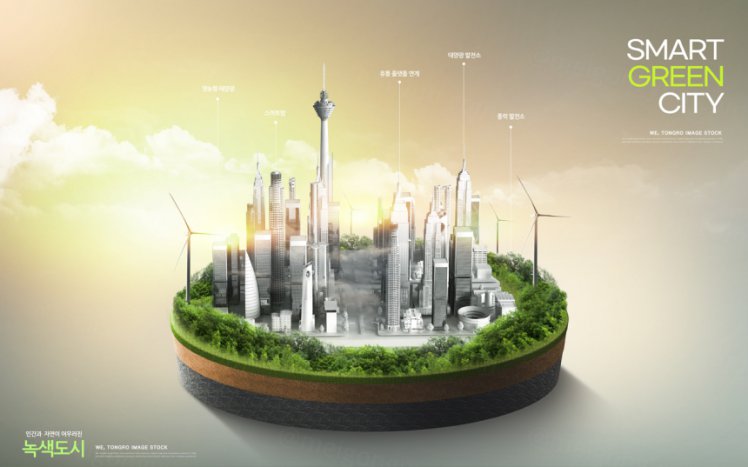 图穷联素材库 » 智能绿色环保城市宣传未来科技CG三维合成概念海报PSD模板 Smart Green City
