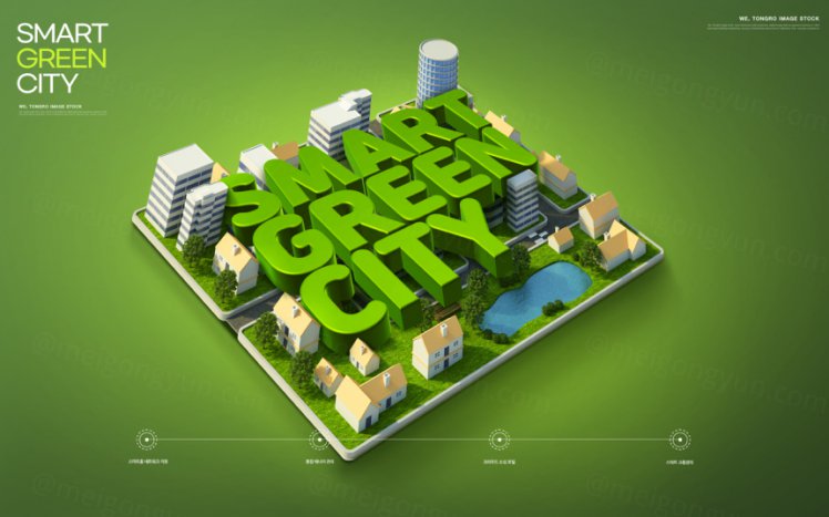 图穷联素材库 » 智能绿色环保城市宣传未来科技CG三维合成概念海报PSD模板 Smart Green City