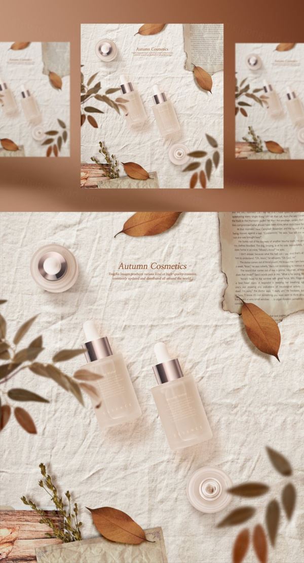 图穷联素材库 » 化妆品秋季主题护肤保湿包装设计美妆海报PSD模板 Autumn Cosmetics