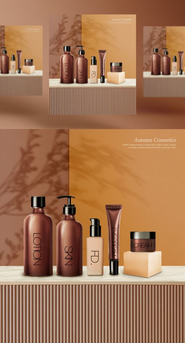 图穷联素材库 » 化妆品秋季主题护肤保湿包装设计美妆海报PSD模板 Autumn Cosmetics
