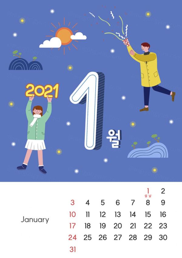 图穷联素材库 » 2021年可爱日历插画PSD模板素材