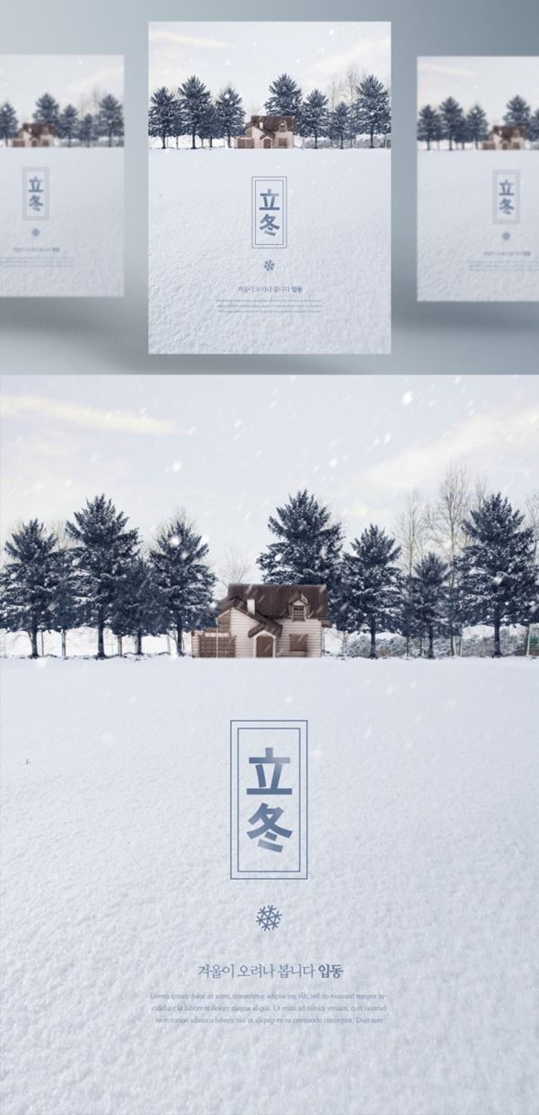图穷联素材库 » 冬季二十四节气立冬简约海报PSD模板
