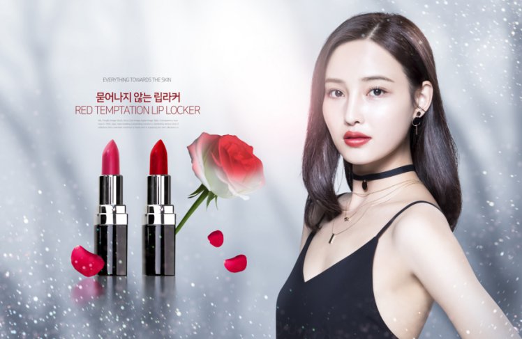 图穷联素材库 » 美女模特口红唇彩美容化妆品简约宣传海报PSD模板