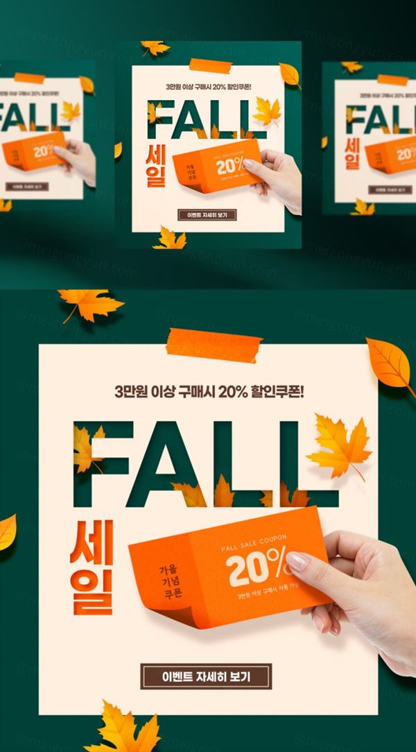 秋季促销优惠券活动网站营销弹出广告购物宣传海报PSD模板